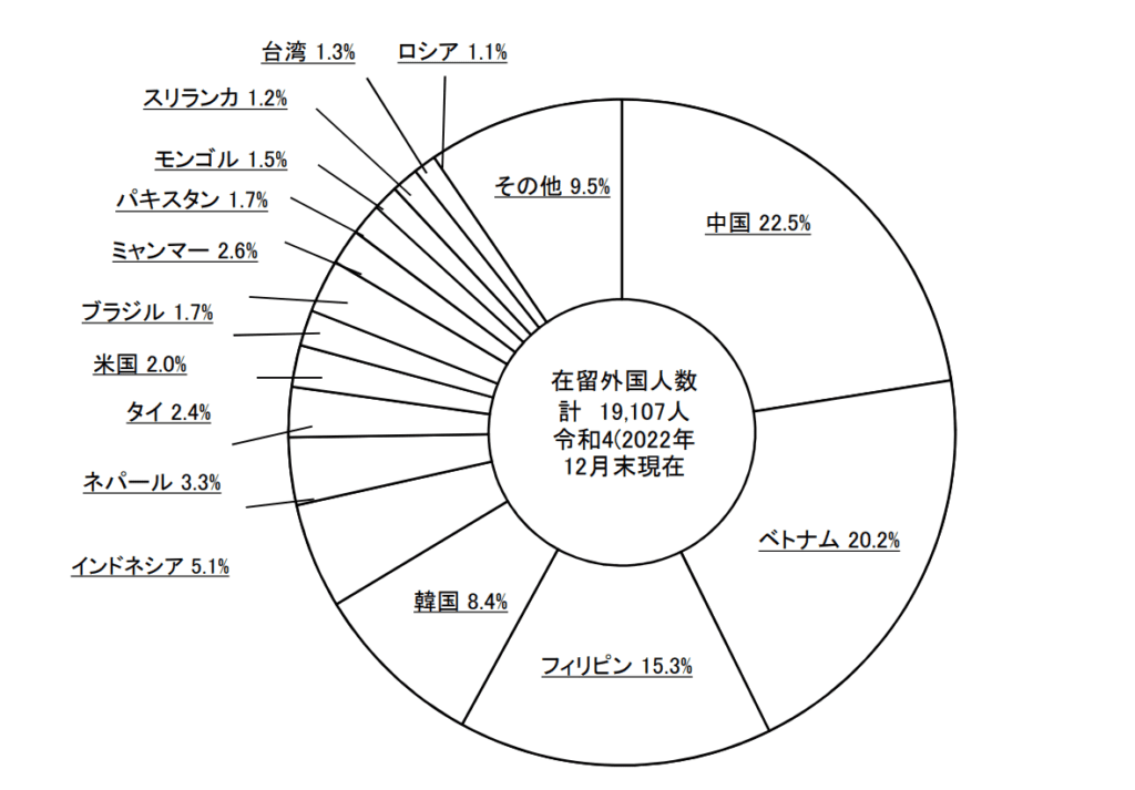 その他、インドネシア、ネパール、ミャンマー、タイなどからの住民も一定の割合を占めています。特にベトナムからの在留者数が急増しており、近年の新たな特徴と言えます。